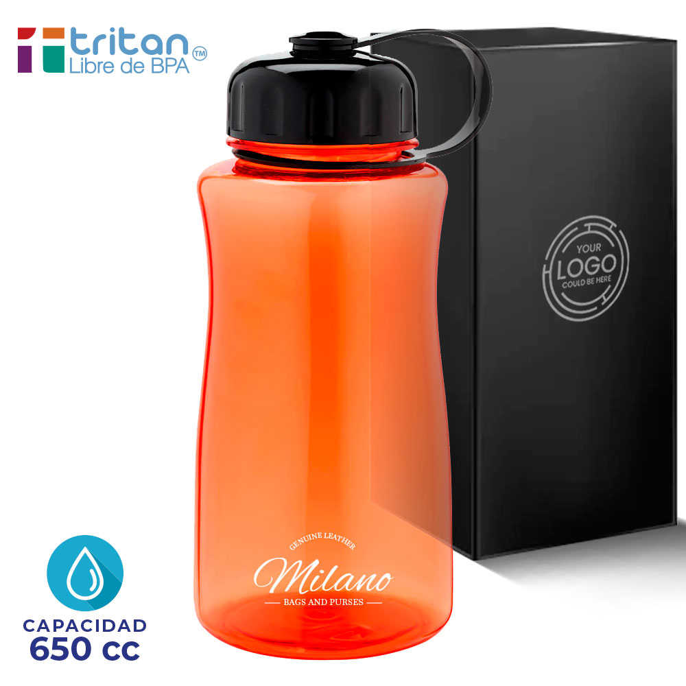 BOTELLA DE AGUA 650 CC FABRICADO EN TRITAN PRODUCTO LIBRE DE BPA COLOR CORAL. 19*8 CM DIAM APROX.