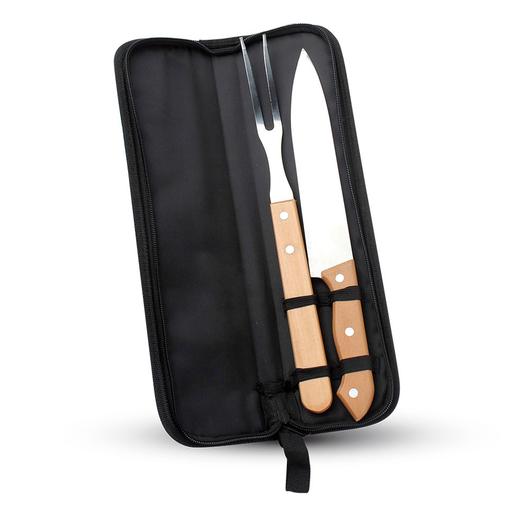 SET ASADO , CUCHILLO Y TENEDOR EN ESTUCHE POUCH CON CIERRE. 36*9.5*2.5CM APROX.