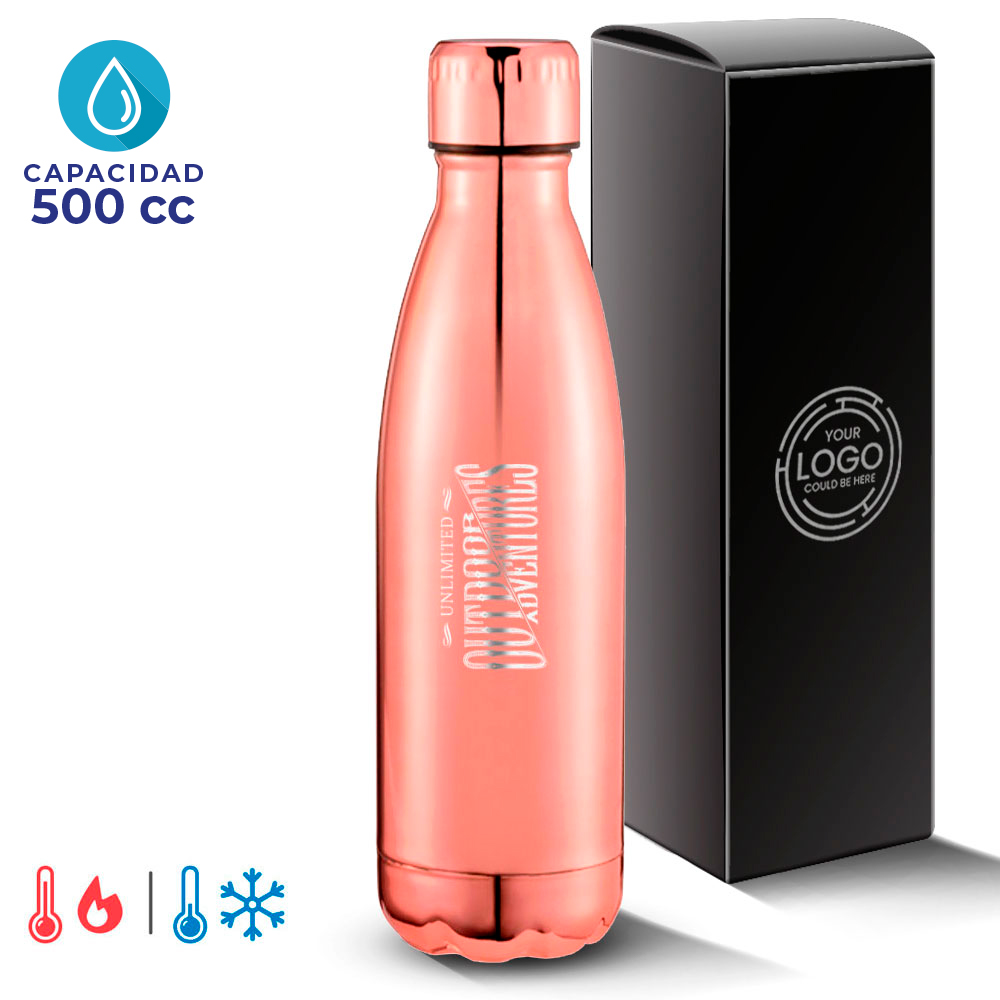 BOTELLA TERMICA DOBLE CAMARA, TERMO ACERO INOXIDABLE COBRIZADO, 500 CC. EN CAJA 25*7 CM DIAM APROX.